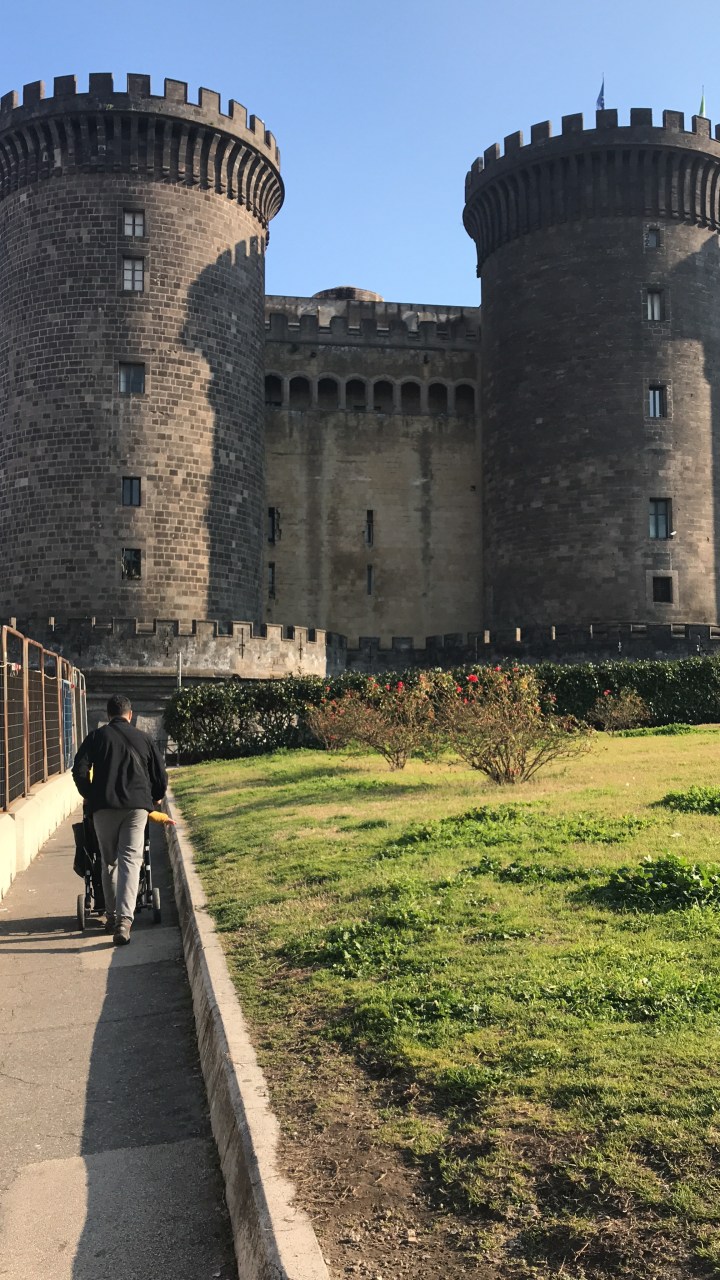Napoli’de sahil kıyısında yürüdük. Denizin kenarında Castel dell’ Ovo (kale) var. İçeriye girmedik. Kalenin dış görünüşü güzel. Merkezde Castel Nuovo (kale) var. Bu kalenin biraz gerisinde kurt heykelleri vardı. Epey fazla. Oğlum çok eğlendi. Aralarında koşturdu. Hava oldukça iyiydi. Güneşliyken ince kazak ve polarla gezdik.