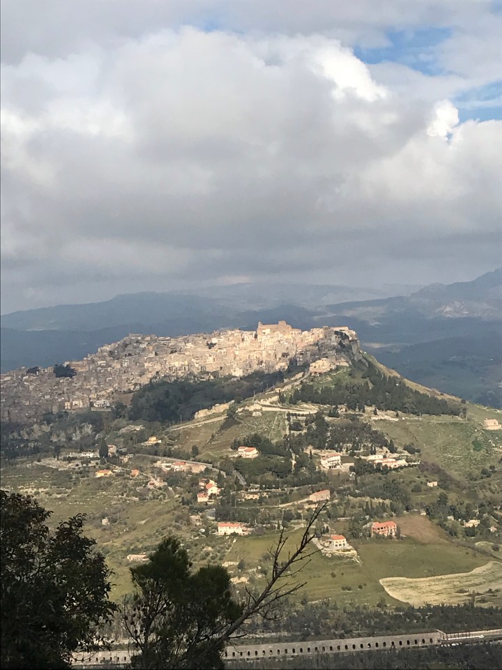 Sirakuza’ya giderken yolda bir dağ gördük. Ve dağın tepesinde bir yerleşim. Hemen rotayı çevirip Enna’ya çıktık. Gerçekten harika bir manzarası vardı. Diğer yerlere göre hayli soğuktu. Kar yoktu ama olsa şaşırmazdık.